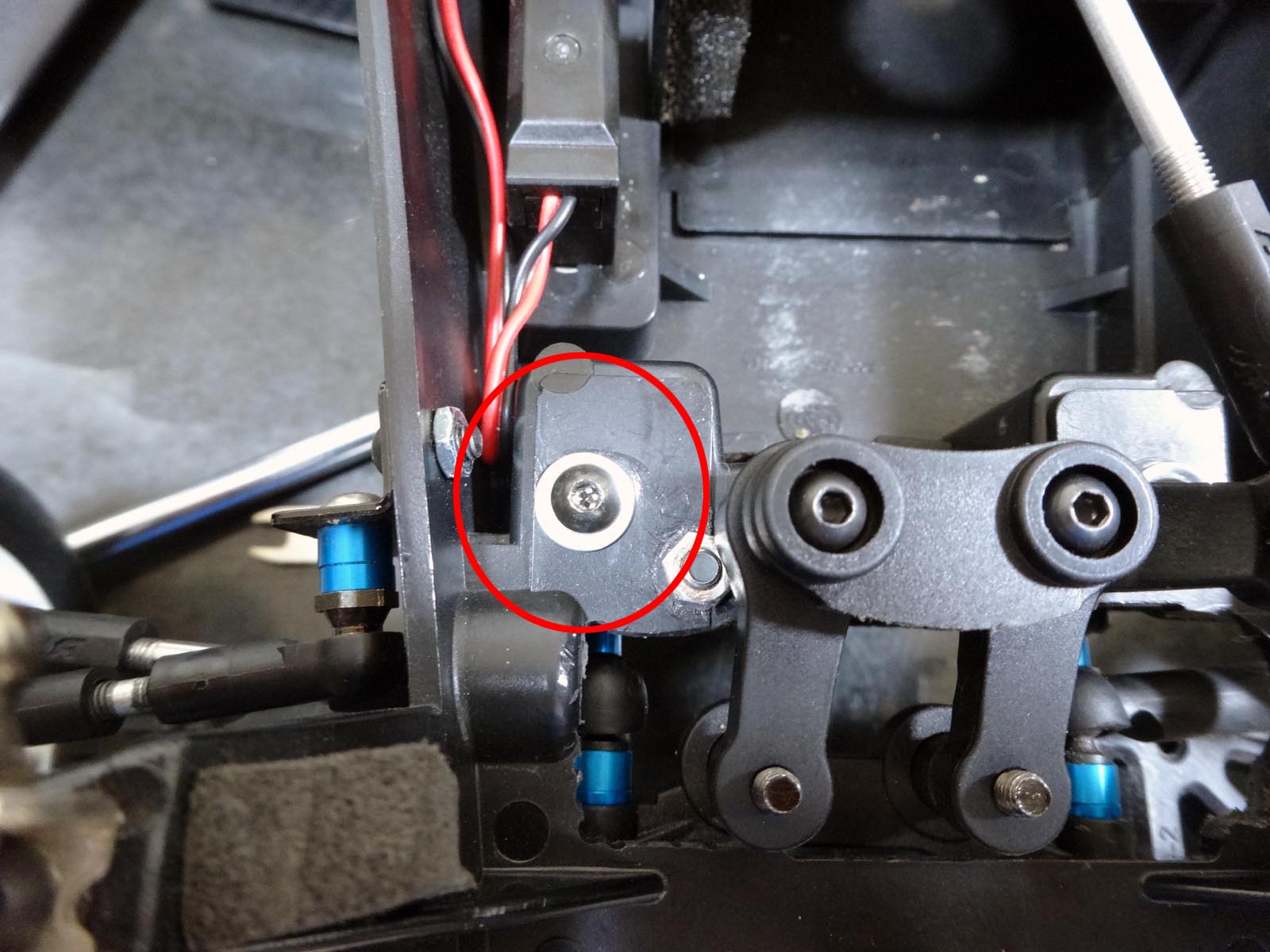 ちょうど良さそうなものを探してたら、見つかりました。タミヤで一般的に使われているサーボに取り付けるやつです。(今回はTT-02のキットについてたやつ)
