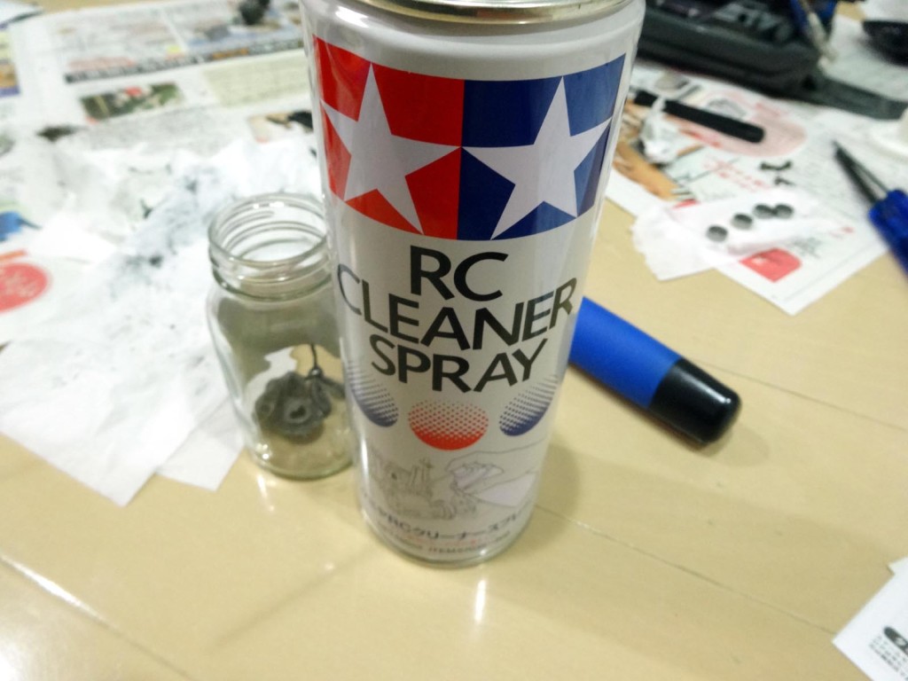 ある程度、ギヤが浸かるぐらいスプレーしたあとに、瓶にふたをしてシャカシャカ振ります。